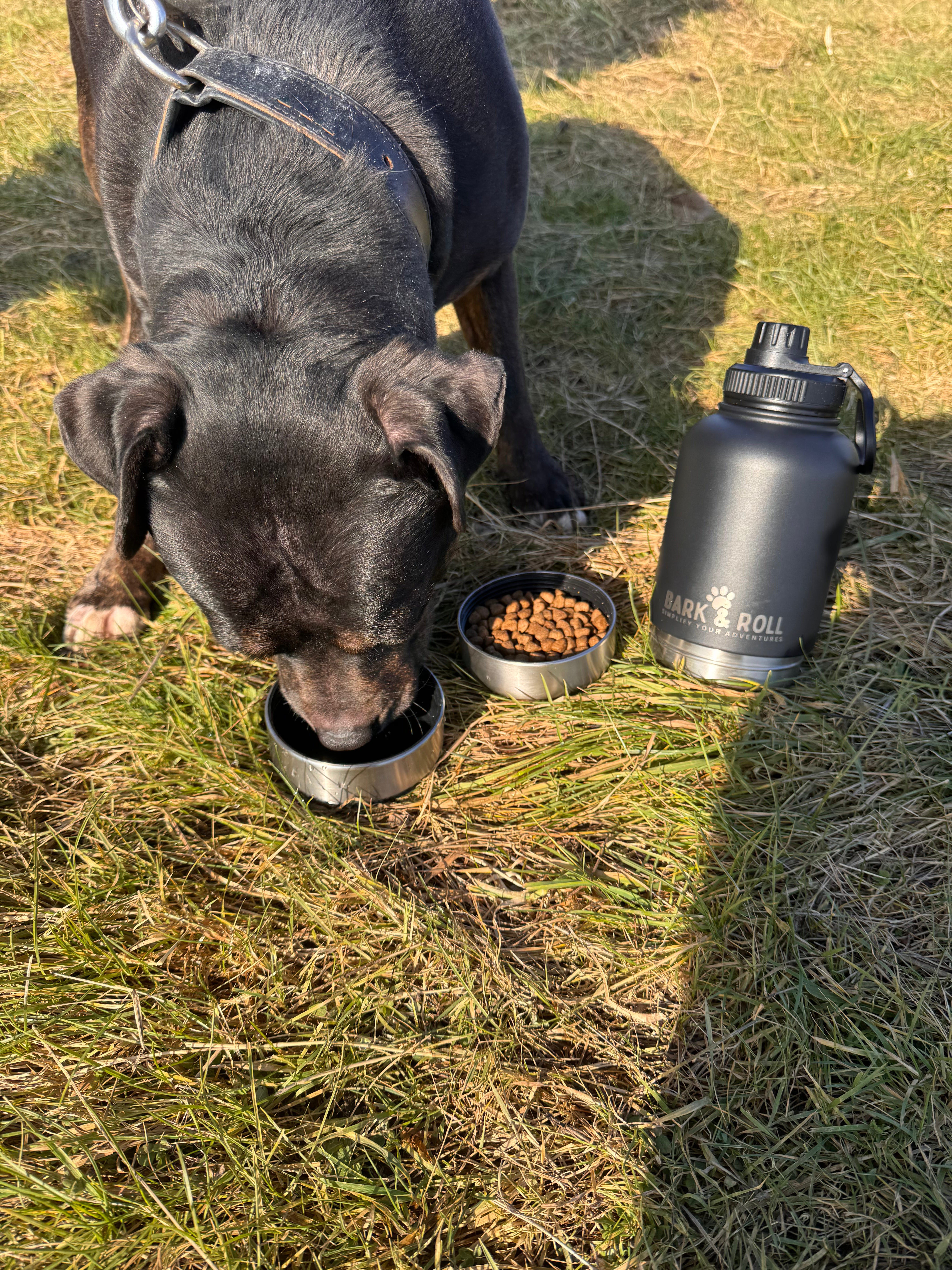 900ml capacity, stainless steel twin wall thermal insulated bottle keeps water fresh for hours. (BPA-FREE) for your pets safety.